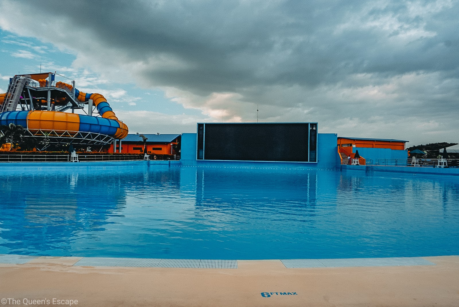 It was early in the morning but it sure felt like midday. We didn’t dare check the weather forecast for some monsoons prior to our trip as we have claimed that the sun will be up and brimming like it has always been every summer. With no decent sleep but with a hearty breakfast from my favorite fast food that set the mood for the day, we excitingly took the last P2P trip that was heading from Trinoma to Aqua Planet. Rewarded with comfort by the reclined well-cushioned seat in a fast air-conditioned bus, we drifted and surprisingly woke up at the driver’s call on the passengers who were supposed to alight at Clark Airport. The skies are grey and the clouds seemed heavy. It’s indeed a double whammy – the driver forgot that we were supposed to get off at Aqua Planet and the sky is about to pour any moment. (A piece of advice, ya’ll, don’t forget to remind the driver and conductor that you’ll get off Aqua Planet). Good thing, the driver told us that he’d dropped us off Aqua Planet on his way back to Manila. We waited a few, anger subsided, and revived the excitement. 20 minutes later, we found ourselves walking to the entrance of one of the biggest and most modern water theme parks in Asia.