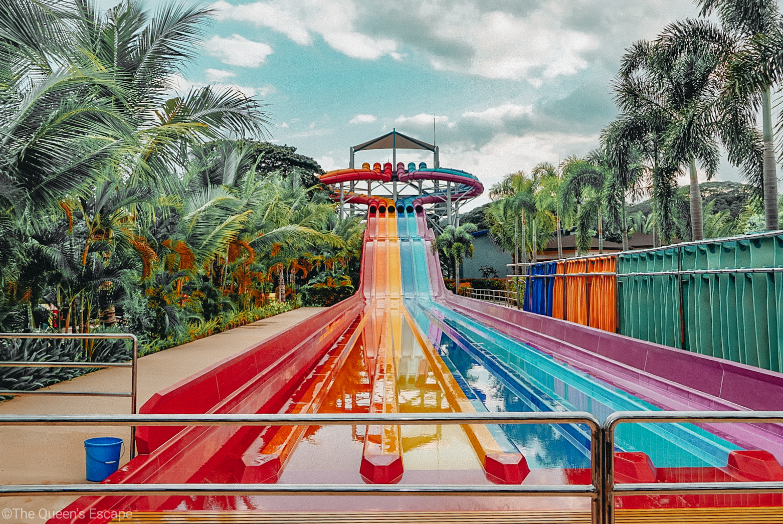 The god-awful weather that day paused the operations of all of the attractions every now and then. The rain would fall heavily then the sun would shine in all its might right after – as if no downpour happened. Guests were sent out of the attractions and will only be allowed to get in after the rain has subsided. It gets really crowded on weekends so longer queue to the slides should be expected.