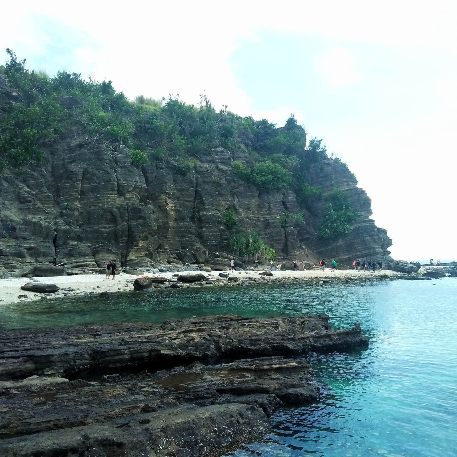 The tour was scheduled May 13-14, 2017 and we had to meet at the night of May 12 in MRT Buendia Station. Again, I have found myself in the middle of strangers in a van. But then, my friend who invited me was there, too, thankfully, so talked and talked about traveling. When all of the participants were settled in the van, at 10pm, we took off. We headed to Pugawan, Quezon this time instead of San Andres Port. We arrived in there at around 6am and waited for the boats. We were brought into a remote and small beach resort where we waited and had the first meal of the day. At 730am, the boats arrived and we hopped in. The itinerary was different this time. Our first stop was Dapa or Snake Island. It took us an hour from Pugawan to arrive at the place. When we got there, the sun was up and shining through the waters revealing its crystal clear beauty. Again, rocks are sharp and piercing so we were very careful in every step that we took. Last time that we got there, we saw snakes, the usual ones (sawa?), I guess. But this time, we saw a walo-walo. They are thin, long, with black and white horizontal stripes skin. We left them undisturbed. But then, it made us a little scared enough to be in the waters because they are known to be venomous. After a while, when our fears of walo-walo have subsided and was overtaken by the beauty of the turquoise sea bed, we did some cliff jumping at the edge.
