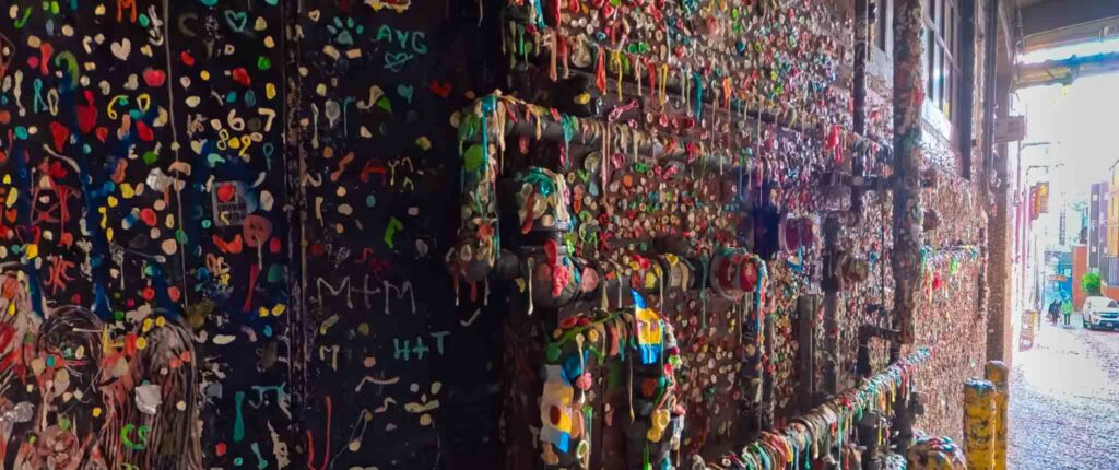 With caffeine in one hand a camera on the other, we walked back to the Public Market but took a stroll down the Post Alley which is just situated below it. It’s probably the grossest but among the most fascinating I’ve seen with the amount of colorful bubble gums stuck on a wall. A group of young men even chewed their artwork and added it to the gallery of gums. Surprisingly, the gums made dull alley colorful making it an ideal spot to take photos. Just be careful not to touch anything. Yikes.