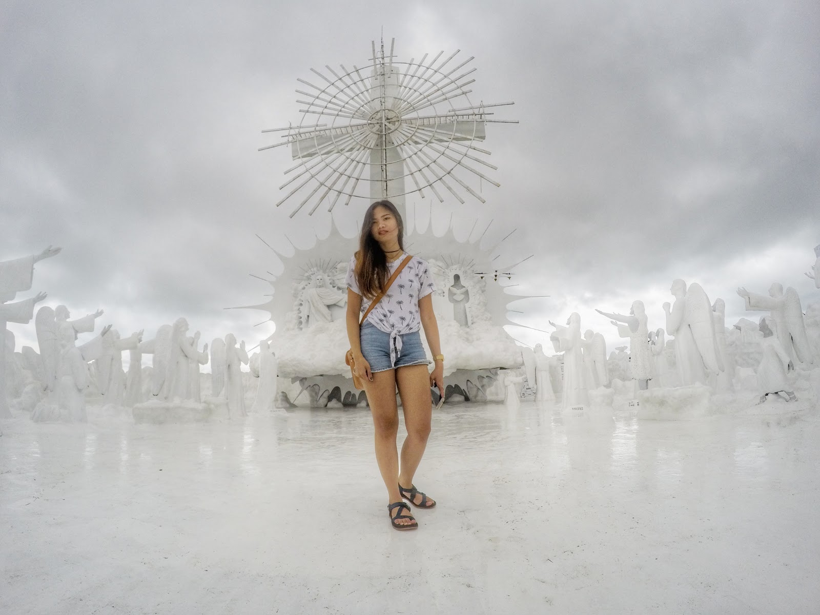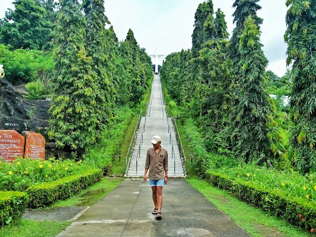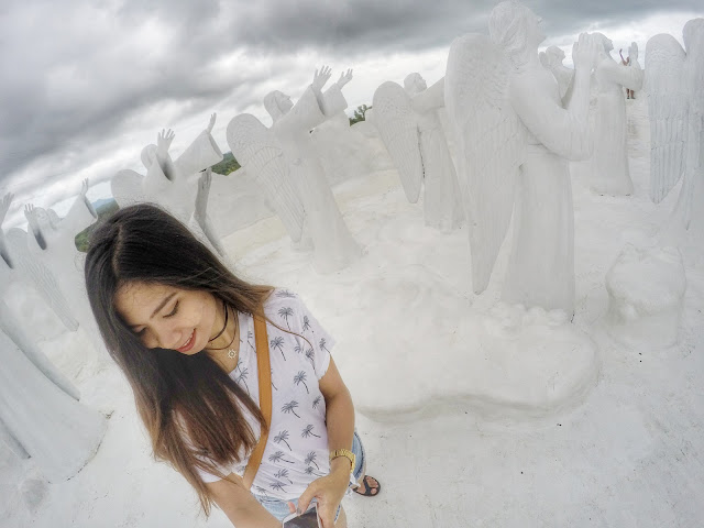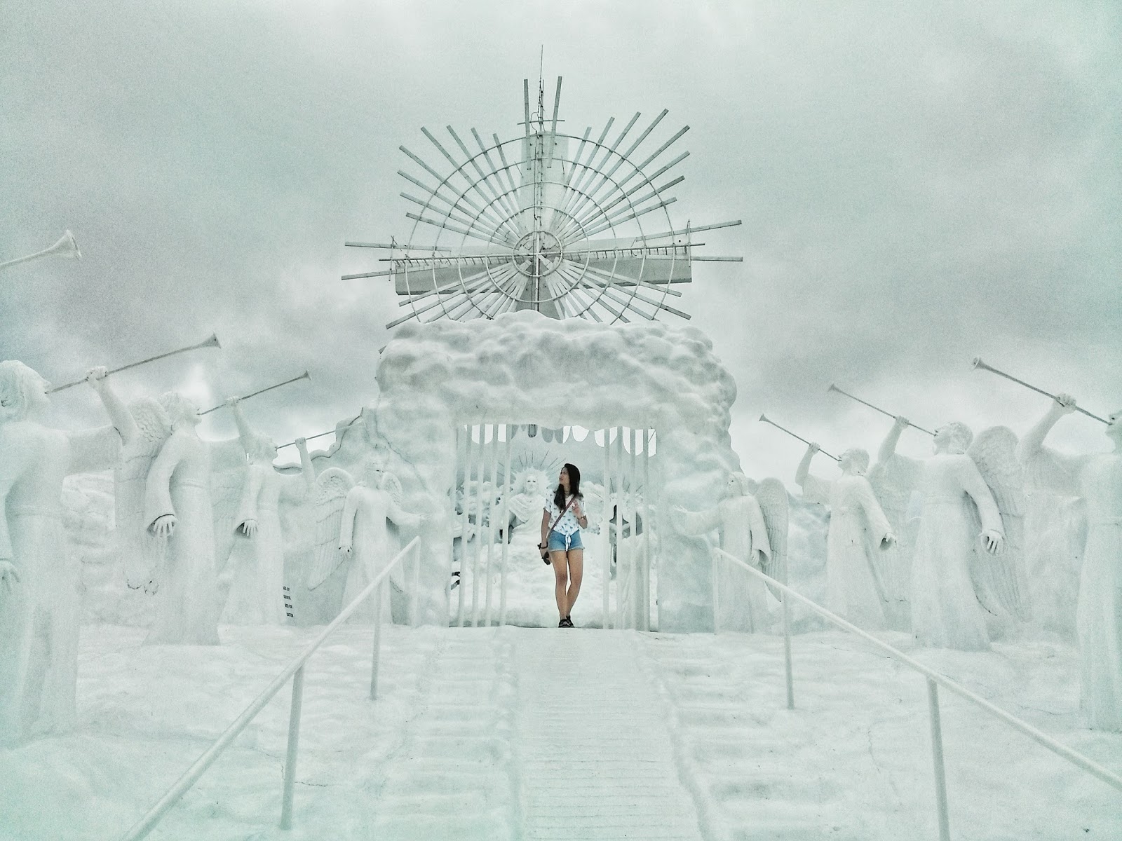 Lo and behold! Prepare to be amazed as you finish your literally breath taking 480-step journey from the creation to ascension. Yes, you’d have to take 480 steps up to the top. For a moment, you will be joining the dark side. Don’t worry, though, for you will be guide by these little blue lights. Upon your exit from the path full of darkness is quite a visually arresting scene! There you’ll see portrayal of biblical scenes including the creation, passion of the Christ and others not to mention the angelic chorus singing hallelujah as you enter the gates of heaven. I had goosebumps, actually. There are life size statues of people and angels with their glorious trumpets hailing you as you approach the gates to Christ and the cross of the Divine Mercy. The experience, I guarantee you, is quite heavenly. You won’t even get to recognize the skyline because everything is insanely white not to mention the clouds from afar.