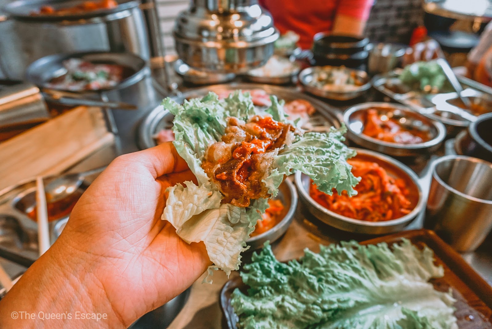 I personally love the vibe and ambiance of the restaurant (not to mention the utterly inviting smell of the meat being grilled – the soul of Korean Barbecue!). All of their staff, from the security guard to the waiters and manager, are very hands-on to their customers. They are very approachable too! They greeted us with warm smiles upon our entrance and had us escorted to our table. They also assign a particular staff who will look over and attend to your needs and requests. There was no need to raise our hand to ask someone to come over. The staff assigned to us was just around the corner and he knew it if we need something. Every time we turn our heads, he’s there to ask what is it that he can do for us. As for the food, we were initially served with the side dishes the moment we settled in our corner. After a while, they brought our first three meat selection that we grilled and gracefully devoured in no time. The best thing about it? There’s cheese dip!