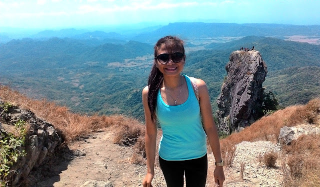The hike lasted for 2 hours with few rests. Good thing my workout is usually on cardio making it easy for me to keep up with my uncle’s phasing. Before we reached the summit,  we were at the campsite where there was a store selling delicious halo halo! Maybe it was delicious because it was a tough hike for me lol. From that store, it took us 30 minutes to the summit which is just near. The problem was there were no ropes that the hikers could hold on for salvation. There were nothing but rocks and deep rooted grass that one can hold on to while creeping their ways to the summit. The loose soil brought extra challenge, too. After struggling, I finally reached the top and couldn’t believe my eyes. The last time I’ve been somewhere as high as that one was when I was on a skyscraper. But this time, it’s solid rock with a view of the oceans and vast land below. I can see the other mountains, ridges and ranges from afar that I promised myself I will be up in there soon!My uncle took photos of me. He asked me to stay here and there as he captured my poses. My knees were shaking of course! I looked at the other side and saw people climbing up to the monolith fearlessly. I said I couldn’t go there. But I will, soon…on a revenge hike.lol.After staying there for an hour, we descended because the crowd is getting larger. It took us 30 minutes going down through trail running. It was quite easy going down running than going up trying to steady my breath!